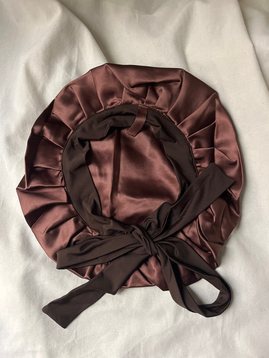 ĂpuisĂ©Bonnet en satin de soie chocolat
